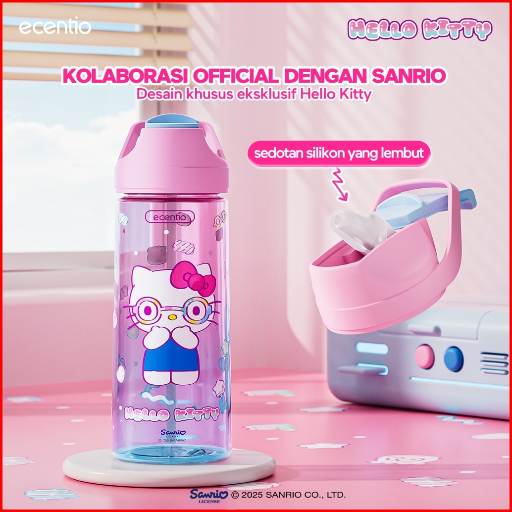 Hello Kitty Series Ecentio Botol Minum Anak 750ml Sanrio Hello Kitty Lucu Botol Air Sekolah Bpa Free