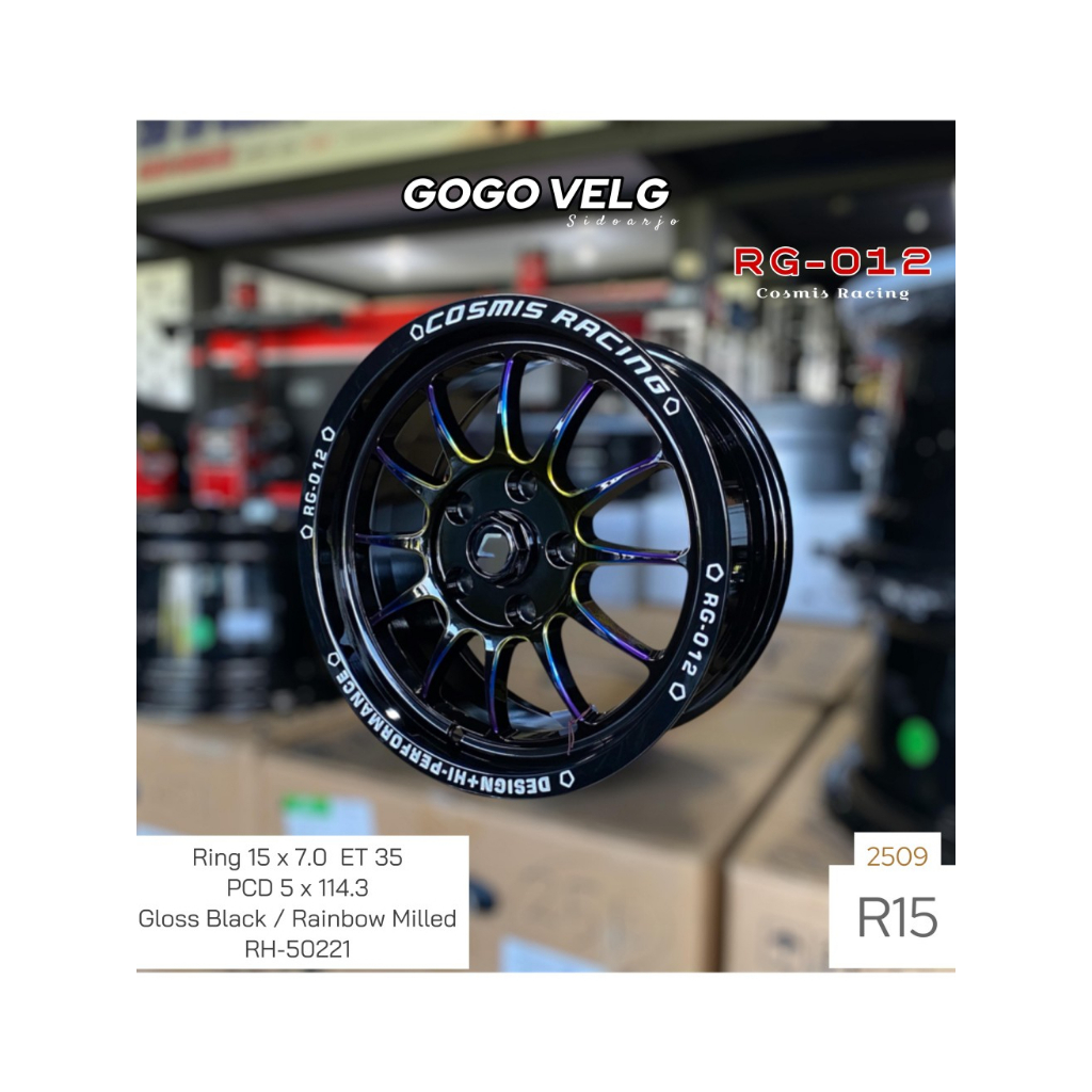 Velg Mobil R15 RG-012 PCD 5X114,3 Cosmis Racing Lebar 7 ET 35 Rainbow Milled Innova Ertiga Ring 15