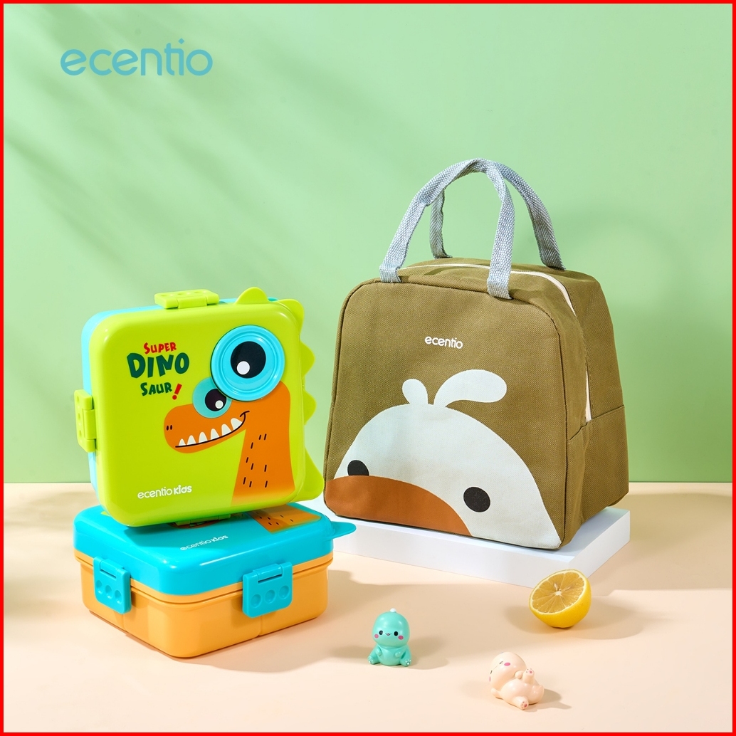 Ecentiokids Kotak Makan Anak 3 Sekat 1100ml 2 Layer Kartun Dinosaurus Dengan Sendok Gratis Bpa Free