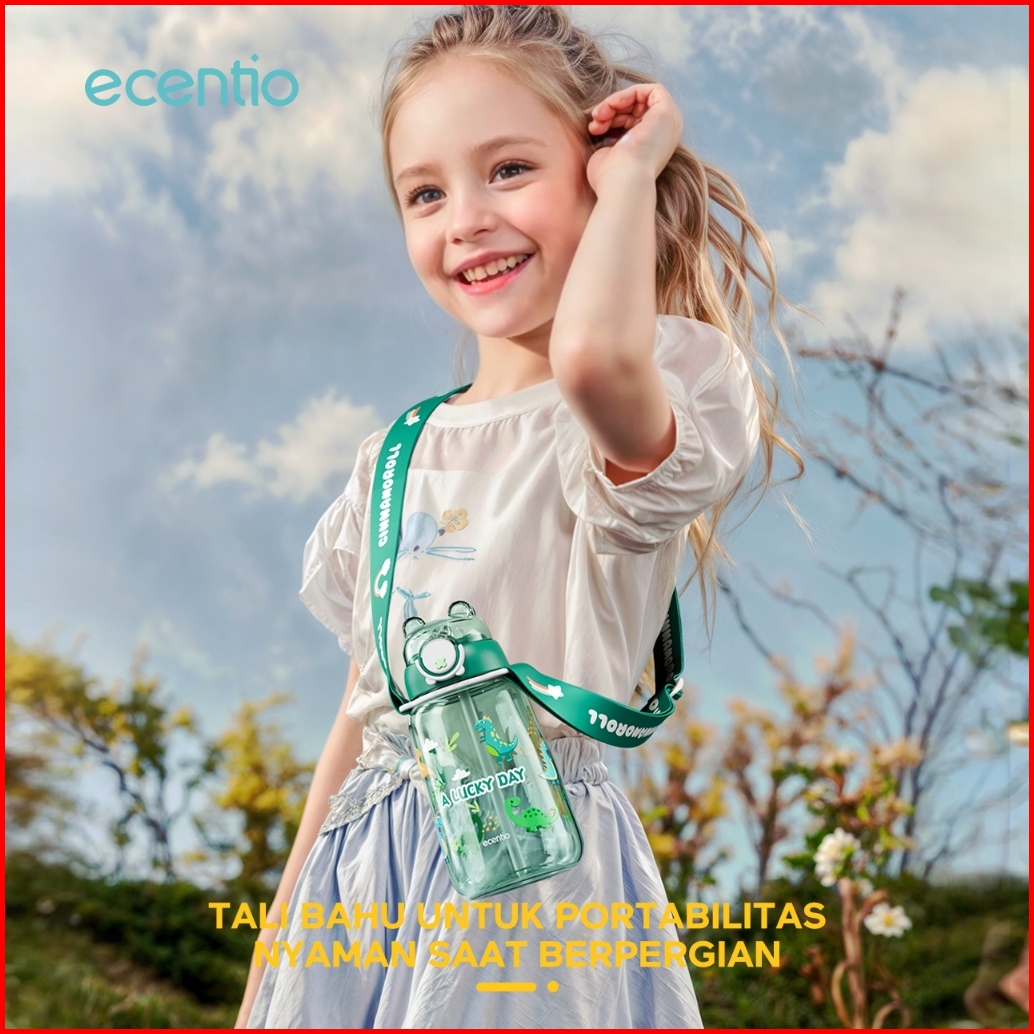 Ecentio Botol Minum Anak 750ml Dengan Sedotan Anti Tumpah Botol Air Bpa Free Pola Dinosaurus