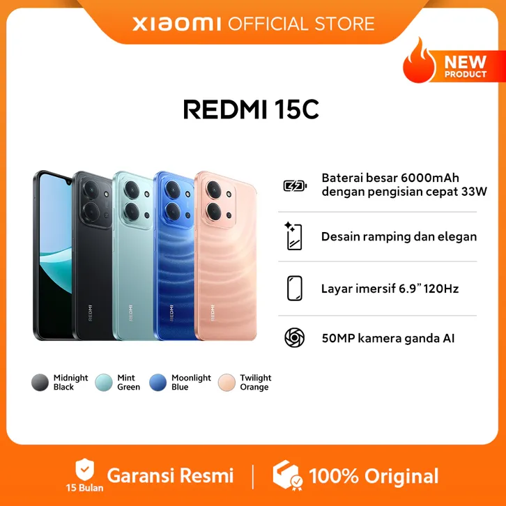 [Mall] Xiaomi Redmi 15C (6GB/128GB) (8GB/256GB) | Baterai besar 6000mAh dengan pengisisan daya 33W TANPA DP ORIGINAL