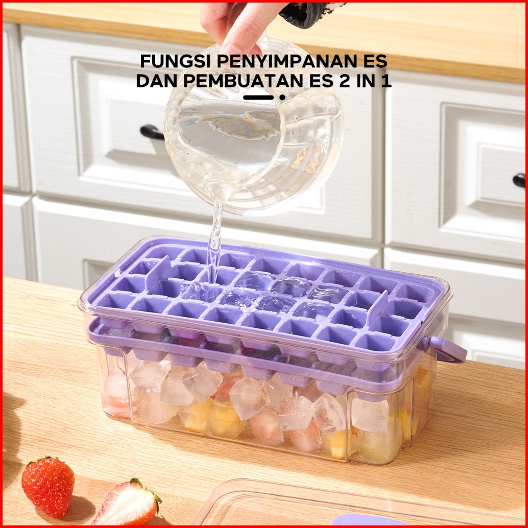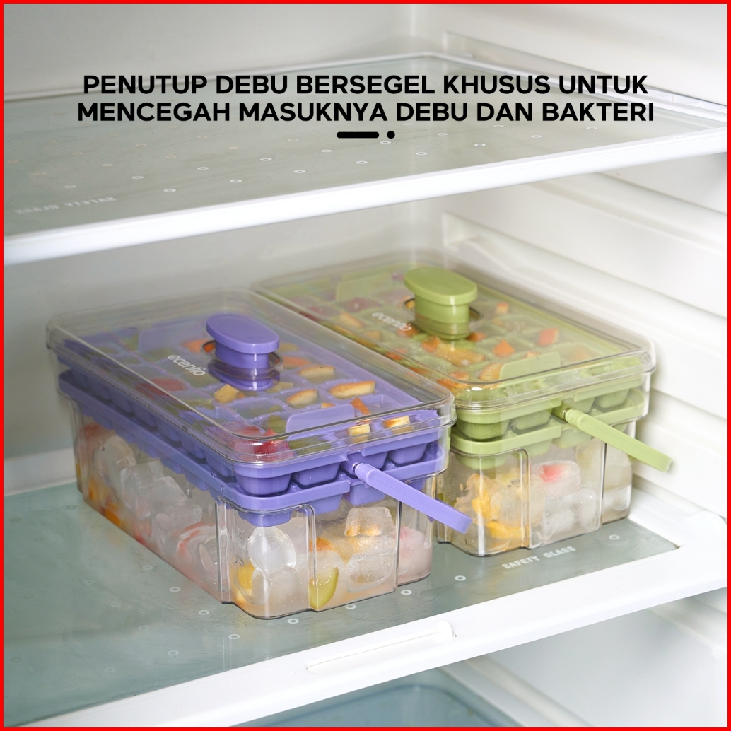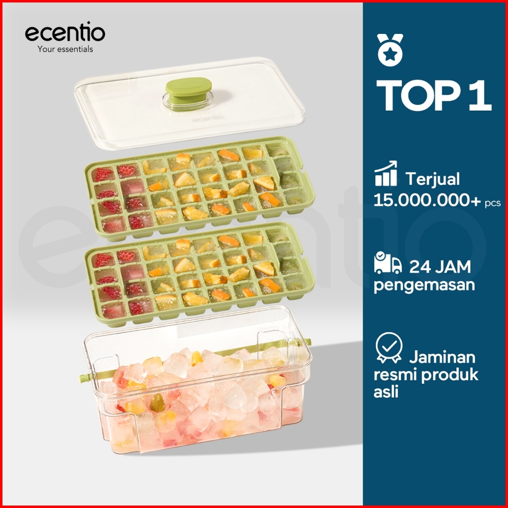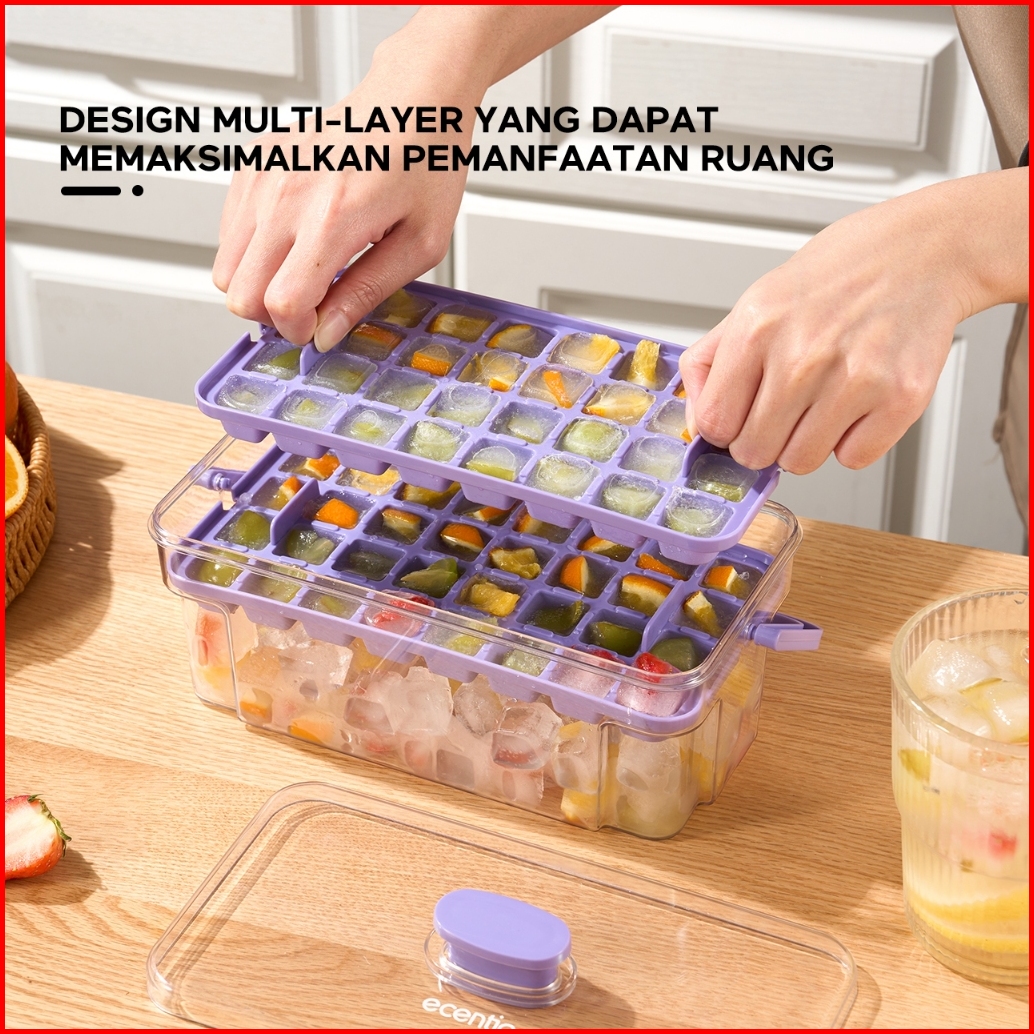 Ecentio Cetakan Es Batu 64 Grid Tray Ice Cube Container Gratis Sendok Penyimpanan Es Dan Pembuatan Dengan Press Handle S