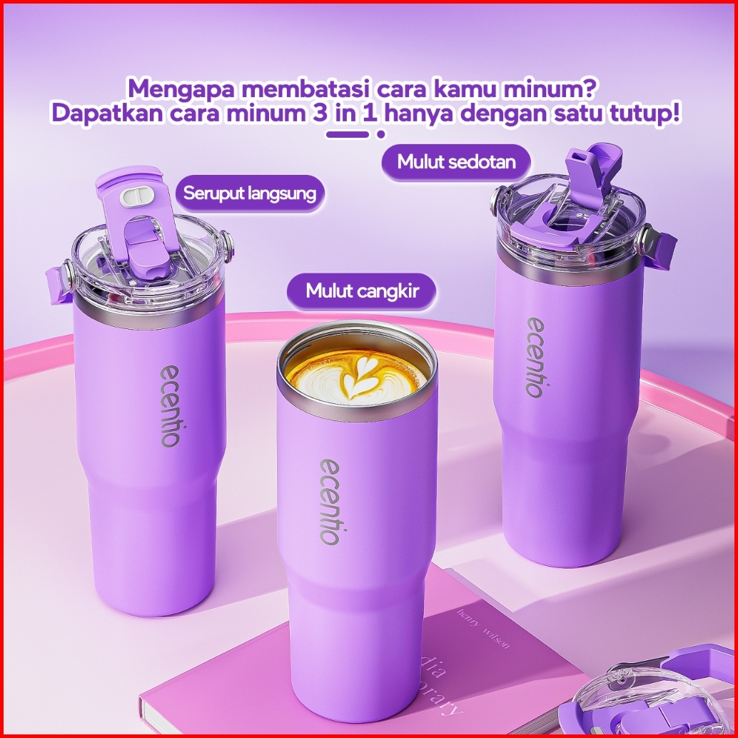 Ecentio Tumbler Stainless Vacuum 900ml Ungu Briu Pink Beige Portable Thermos Botol Minum Besar