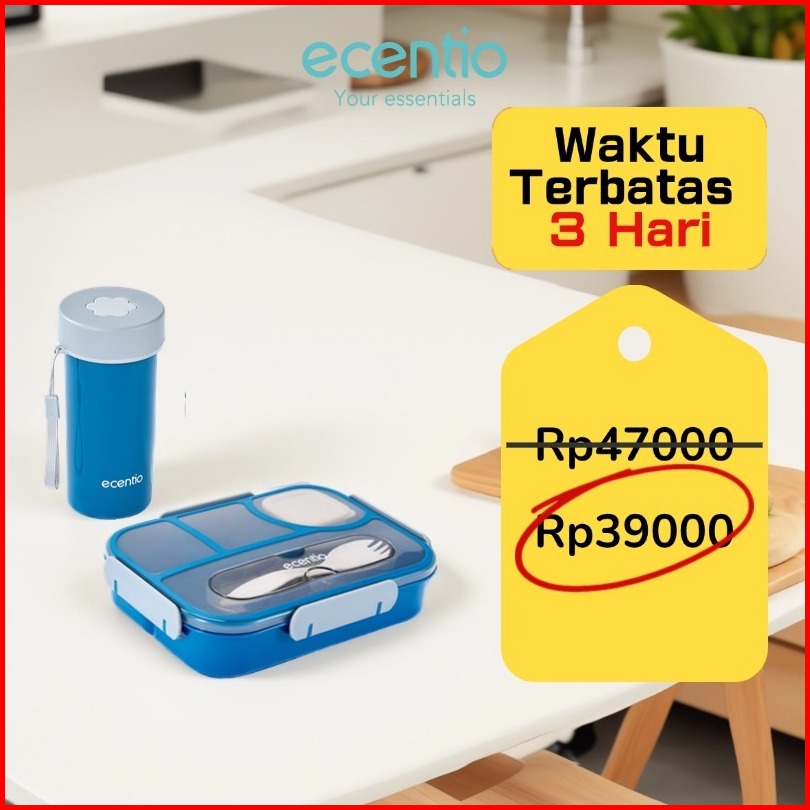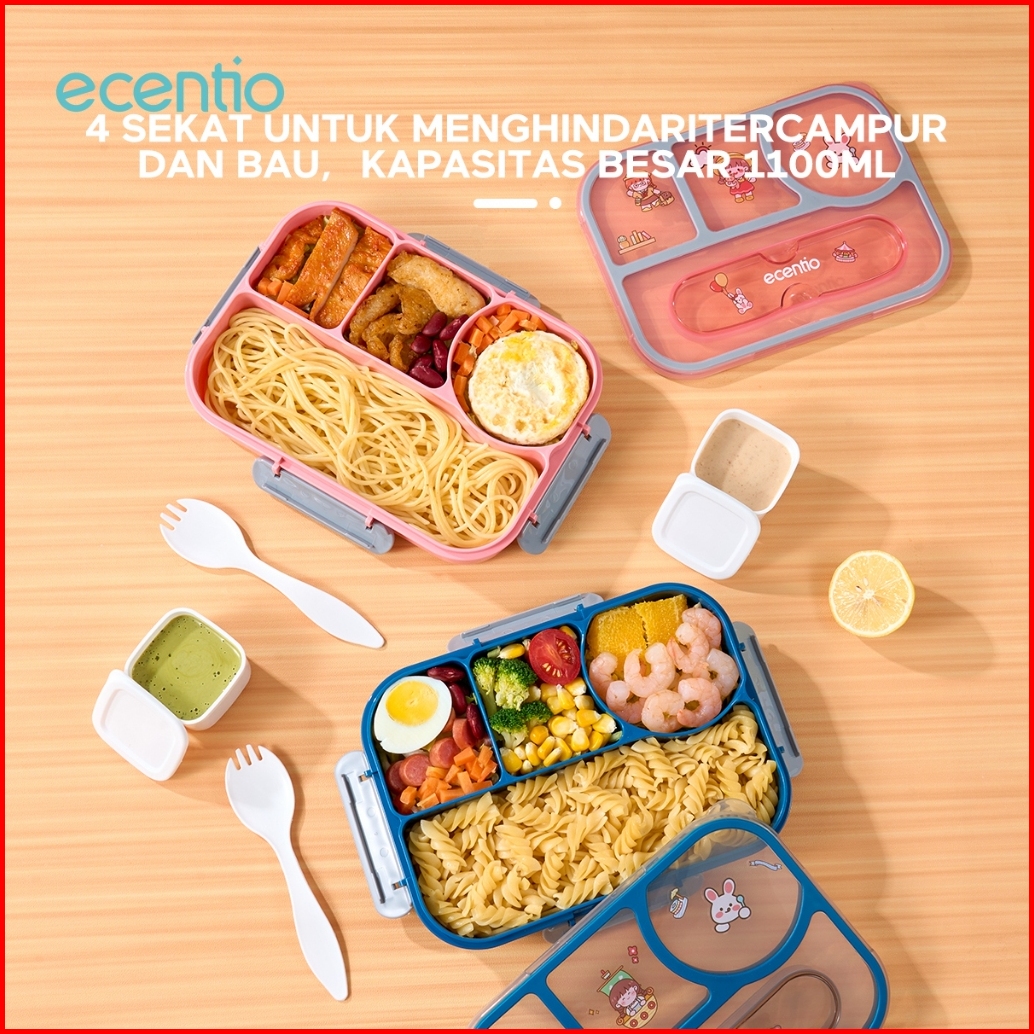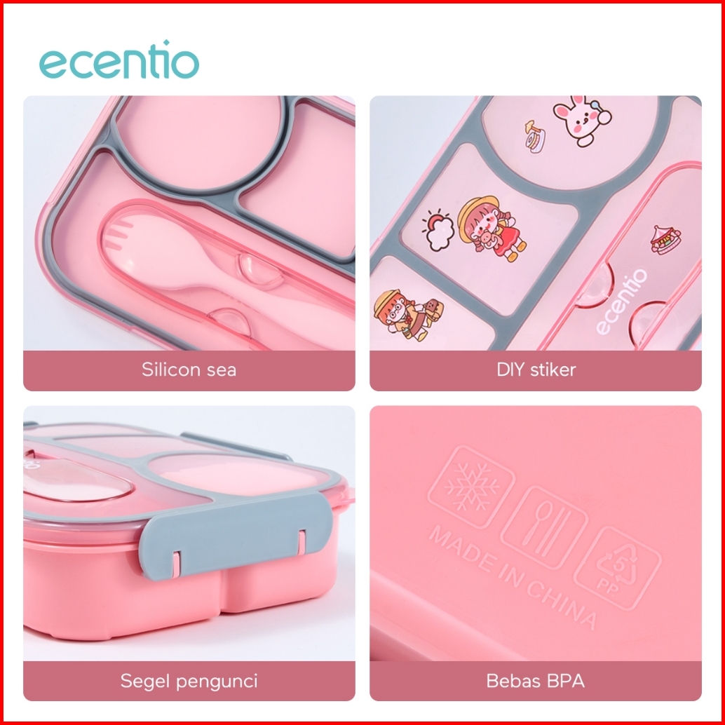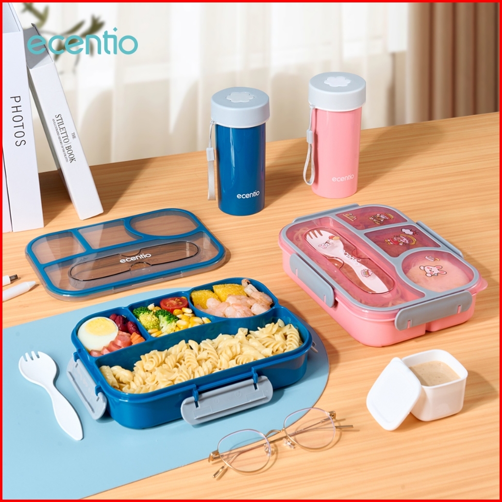 Ecentio Kotak Bekal Makan Set 1100ml Sekat 4 Dengan Sticker Bpa Free Lunch Box Set Gratis Botol Minum