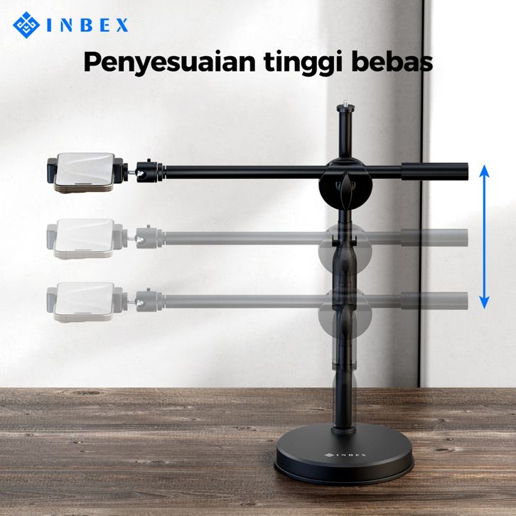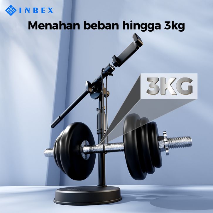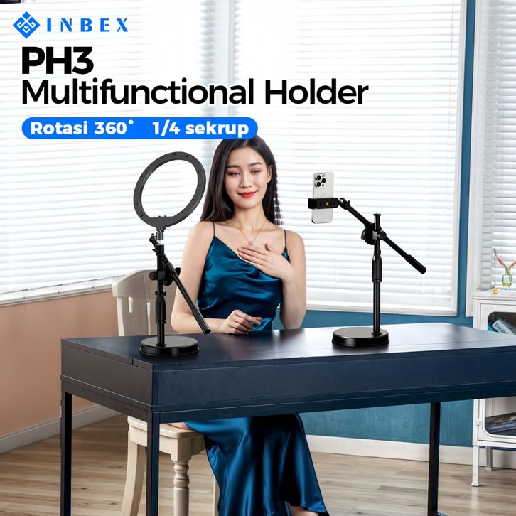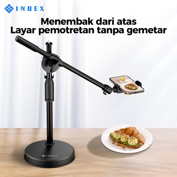 INBEX PH3 OVERHEAD PHONE STAND HOLDER STAND +RING LIGHT/PANEL LAMPU KONTENT CREATOR TRIPOD FOTO LIVE BRACKET 360°