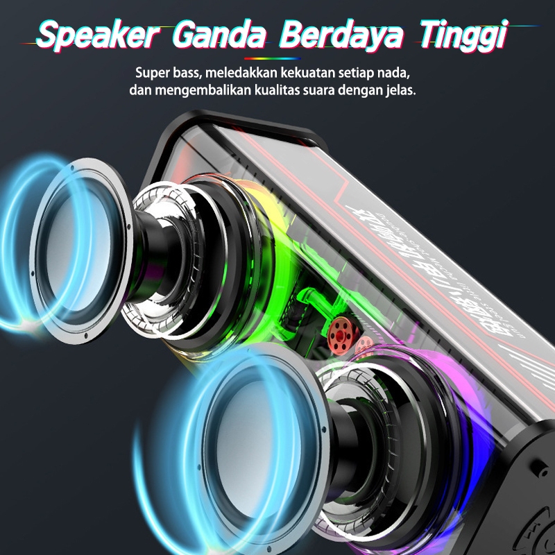 Akona Speaker Bluetooth Cyberpunk 13.6W Daya Tinggi Speaker Bass Bluetooth RGB LED Light Akrilik Transparan V8 Spiker Bl
