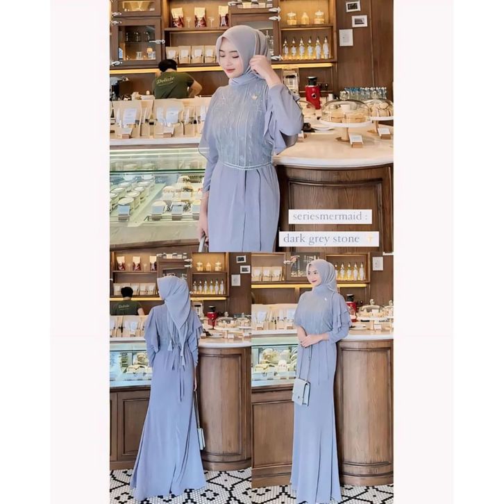 PREMIUM Laura Mermaid Dress Terbaru Ghania Busana - Bahan Ceruty Babydoll Mix Brukat - Puring Full - Ukuran