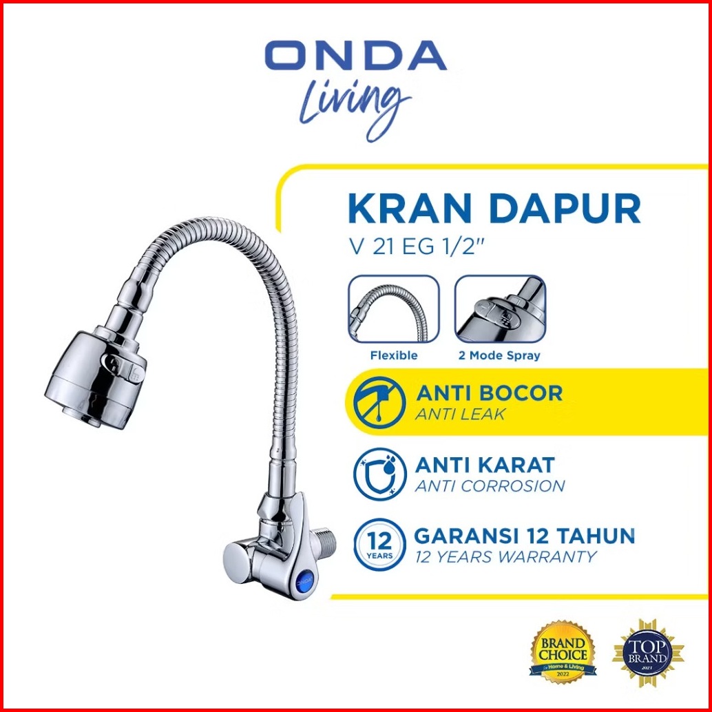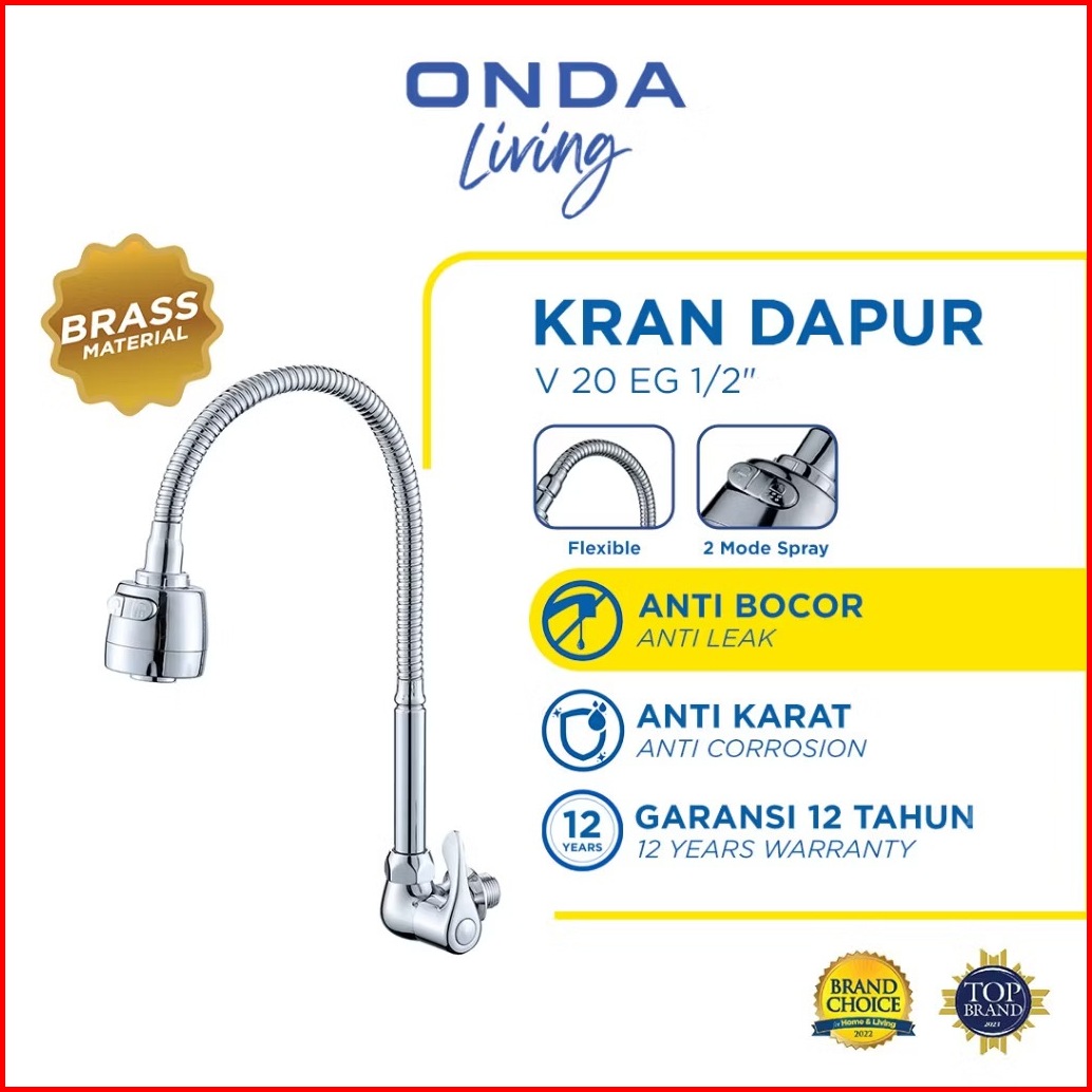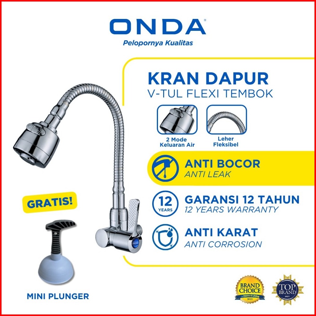 Onda Kran Wastafel Cuci Piring V-tul Flexi Tembok 1 2 In Kran Air Cuci Piring Stainless Anti Bocor Kran Pencuci Piring L