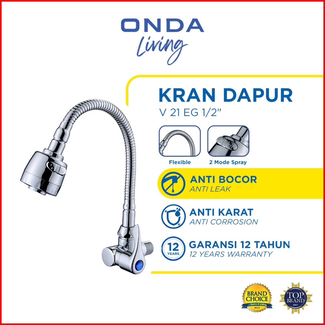 Onda Kran Wastafel Cuci Piring V 21 Eg Tembok 1 2 In Kran Air Cuci Piring Stainless Anti Bocor Kran Pencuci Piring Leher