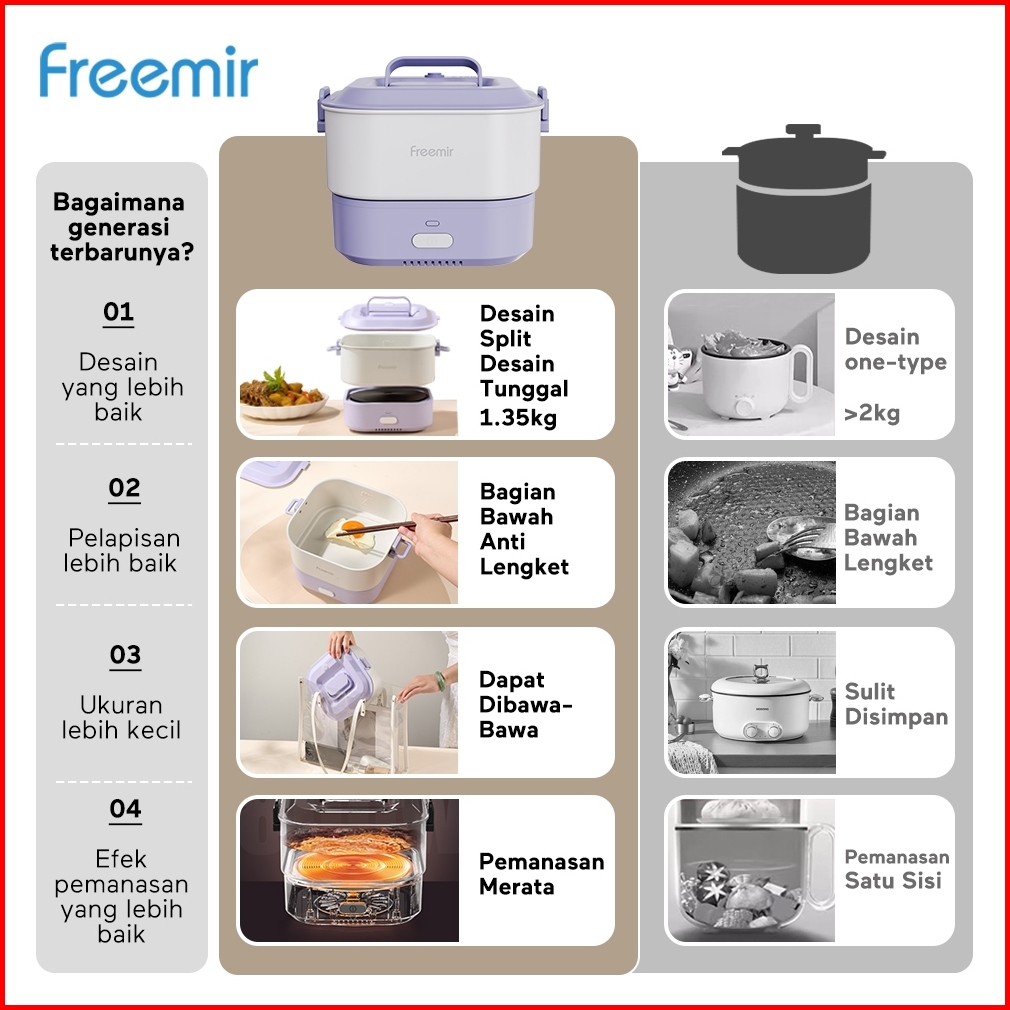 Freemir Electric Portable Cooker 2 5 Liter Panci Multifungsi Travel Panci Portabel Cooker Lunch Box Serbaguna Portable M
