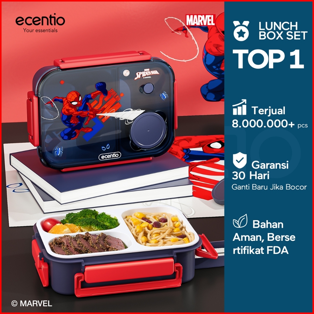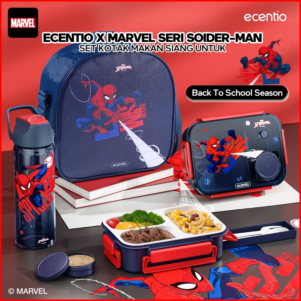 Spider Man Seriesecentio Kotak Makan Set Anti Tumpah Lunch Box Anak 800ml 3 Gird Lucu Free Sendok Bpa Free