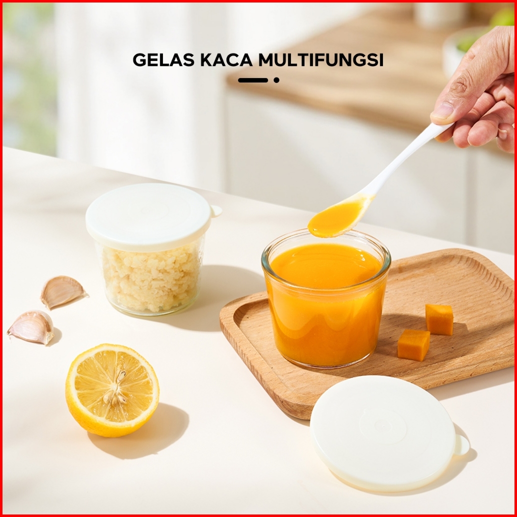 Ecentio Kaca Food Container 200ml Simpan Rempah Bawang Tumbuk Mpasi Bayi Wadah Kaca Tahan Freezer-microwave