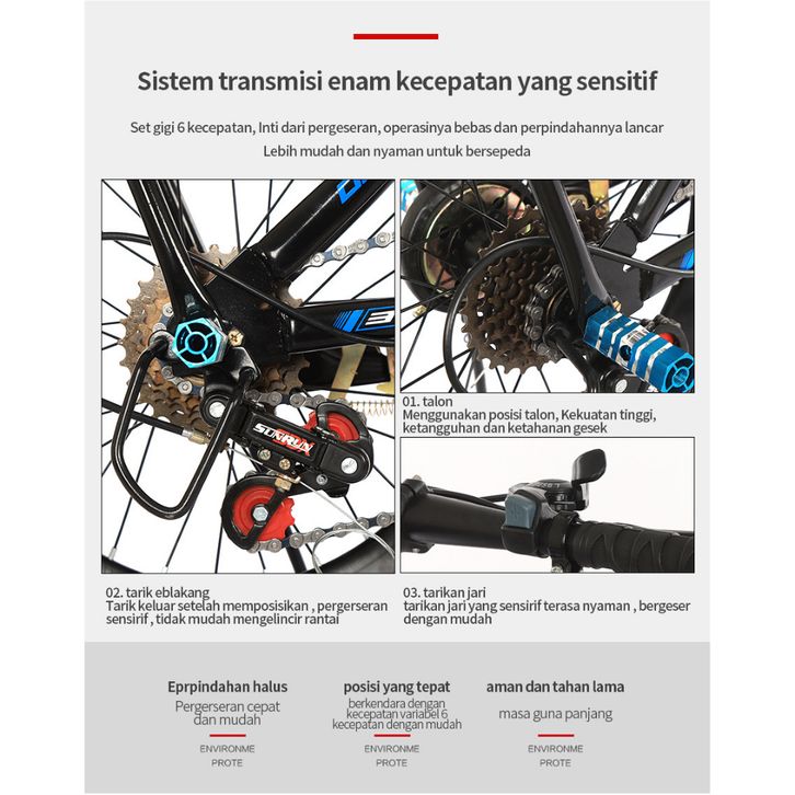 EBUY sepeda lipat 18/20 inci Sepeda gunung anak / Sepeda rem cakram ganda off-road 6 kecepatan