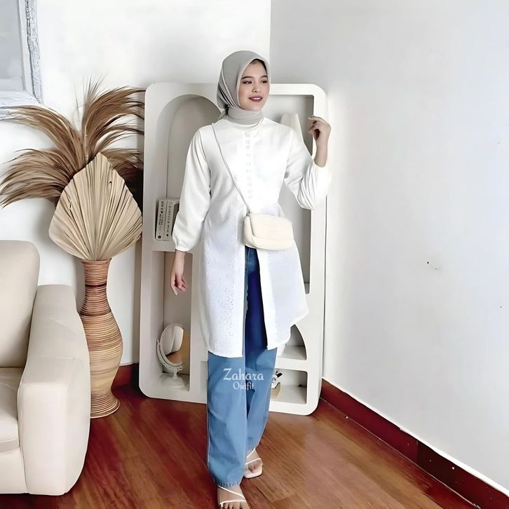 Murah Chea Tunik Katun Bordir / Tunik Kondangan / Tunik Katun Bolong Elegan