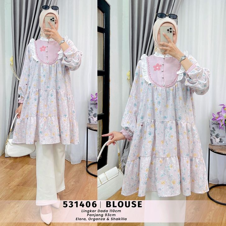 Murah EXTU HERITAGE - Maura Tunik Busui Motif Cantik Kombinasi Organza Elegan | Tunik Elora Fit to XL Adem - 531406 El