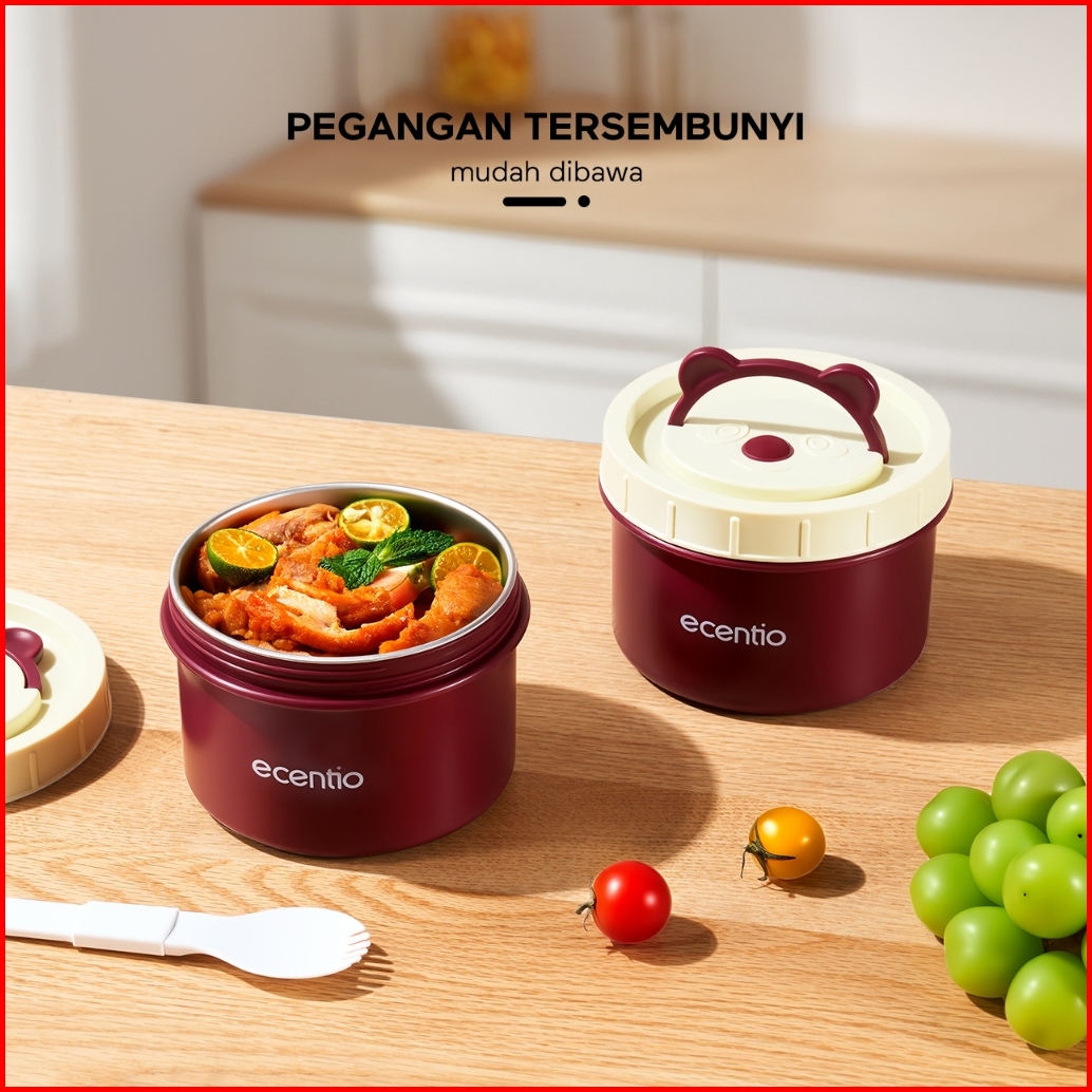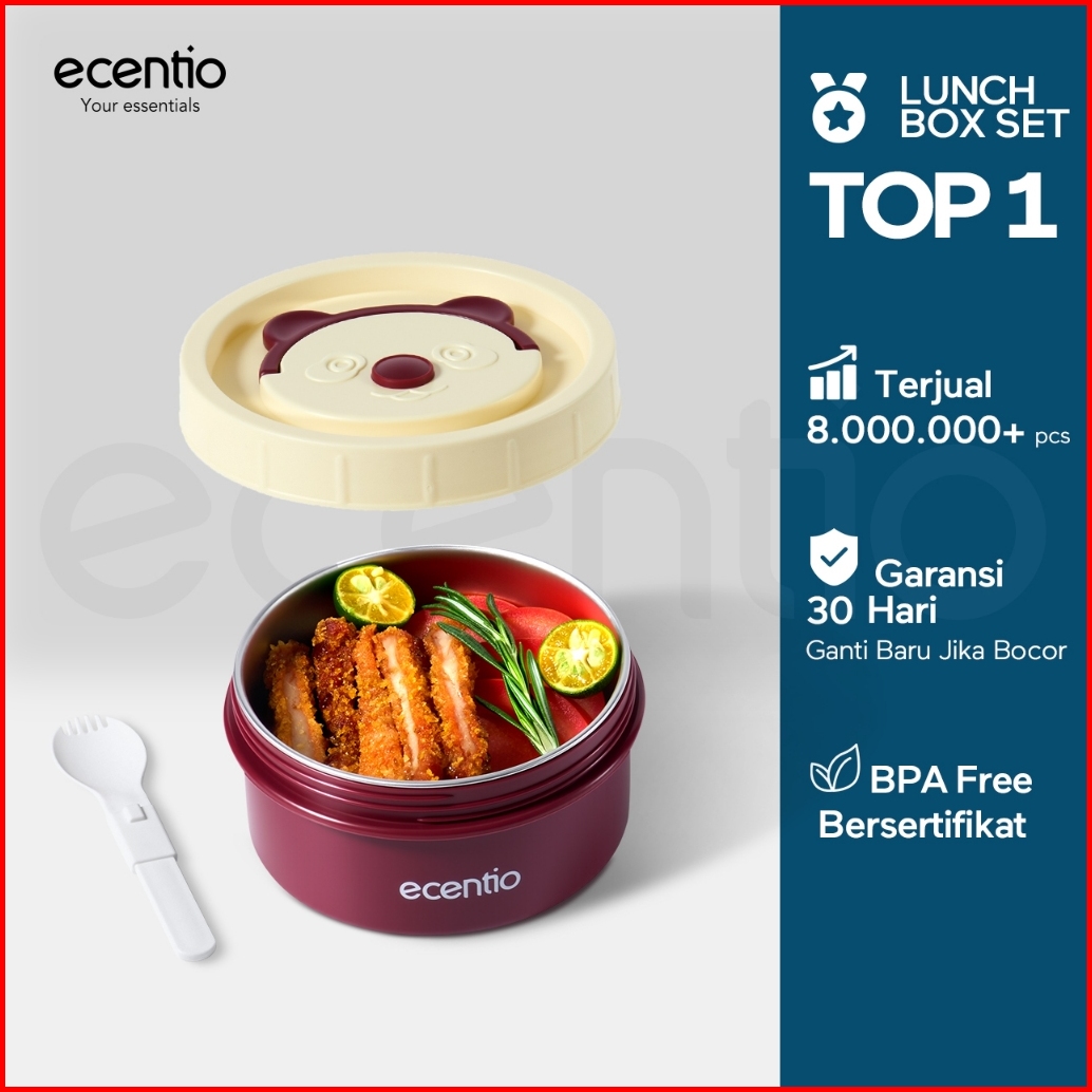 Ecentio Lunch Box 1pc Merah 304 Stainless Steel 400 600ml Kotak Makan Anti Tumpah Free Sumpit