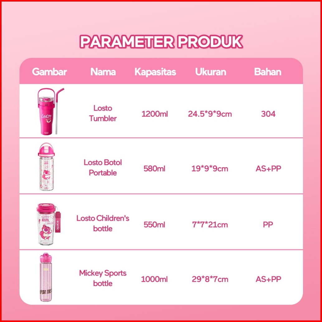 Ecentio Disney Tumbler Stainless Seri Pink Disney Botol Minum Portable 1.2l Disney Lotso Tahan Dingin 24jam