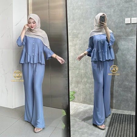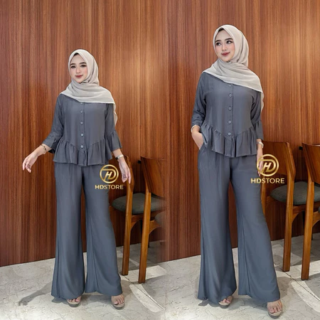 Baju Oneset Wanita Rayon Twill Set Polos Busui Rampel