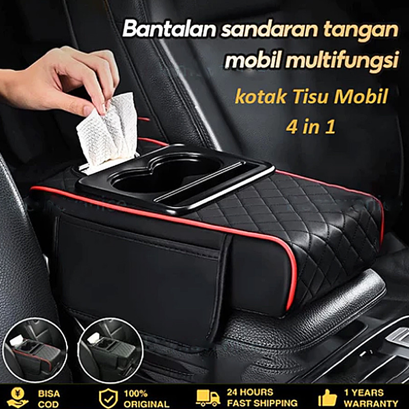 Armrest Pad Mobil Kotak Tisu Mobil Tempat Botol 4 In 1 / Console Box Storage / Cover Tisu Premium
