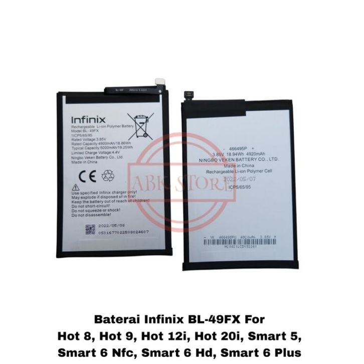 baterai infinix Baterai BL-49FX Infinix Hot 8, Hot 9, Hot 12i, Hot 20i, Smart 5, Smart 6 Nfc/HD/Plus Battery