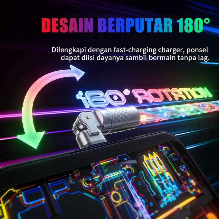 kabel charger type c PENAS Kabel Data Fast Charging Bercahaya Rotasi 180° Cable Charger Type C Micro USB Warna Langit B