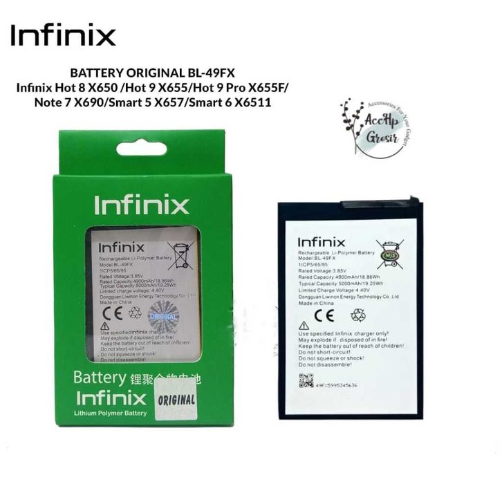 baterai infinix Baterai Batre Infinix Hot 8 Hot 9 Hot 9 Pro Hot 20i Note 7 Smart 5 Smart 6 / 6 Plus BL49FX 100 Ori