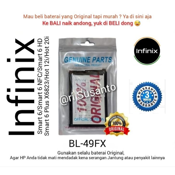 baterai infinix Baterai Infinix Smart 6/Smart 6 NFC/Smart 6 HD/Smart 6 Plus X6823/Hot 12i/Hot 20i BL49FX BL-49FX Asli O