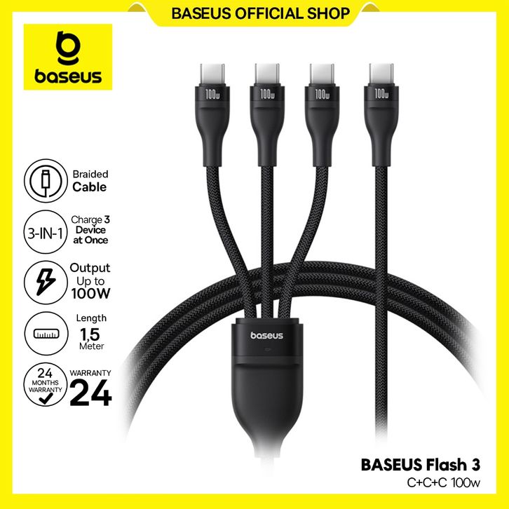kabel charger type c Baseus Cable Data 100W Flash Series 3 Fast Charging Cable Type-C to C+C+C chager 3in1