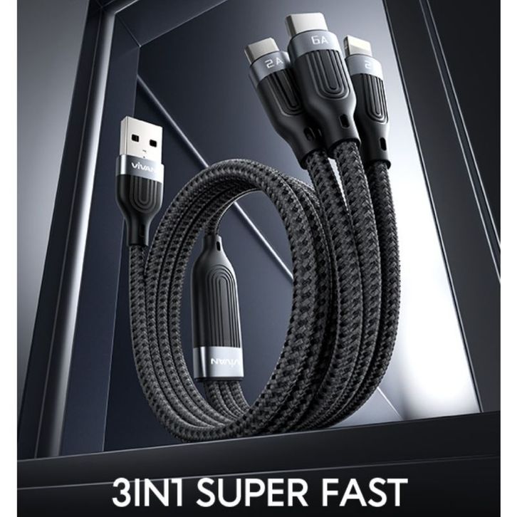 kabel charger type c Vivan Kable Data VYT120S Kabel Data 3 IN 1 kabel120cm Micro, Type-C, Lightning Fast charger origi