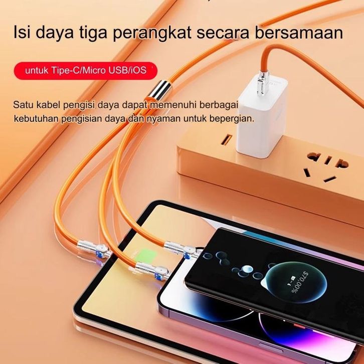 kabel charger type c ZHIKE Kabel Data Fast Charging 3 in 1 HP Kabel Casan Tipe C Micro USB iOS Lightning 120W 1.2M Rota