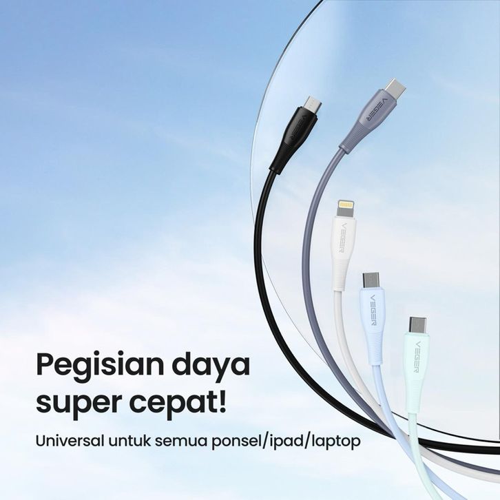 kabel charger type c Kabel data VEGER V-250 MICRO , V-260 TYPE C , V-270 LIGHTNING fast charging QC 3.0 12W ORIGINAL GA