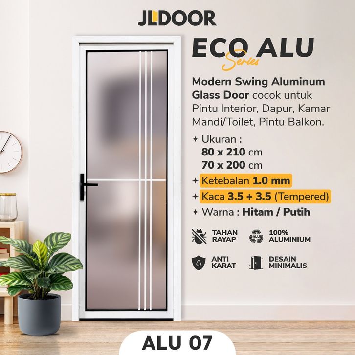 JLDOOR Pintu Aluminium ECO ALU Pintu Kaca Tempered - Pintu Kamar Mandi Dapur Interior