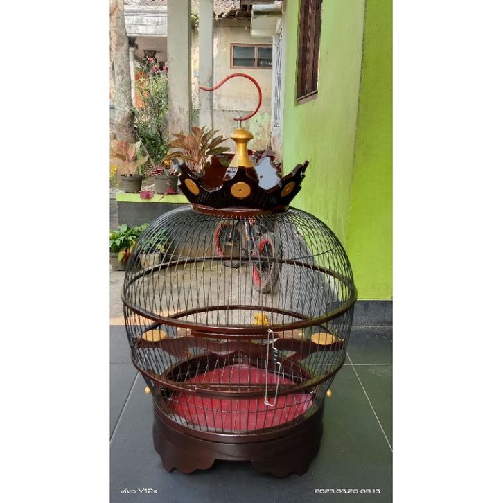 Sangkar derkuku bulat mahkota kayu jati finishing politur