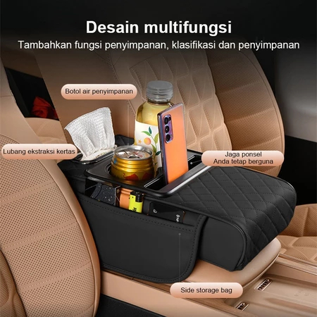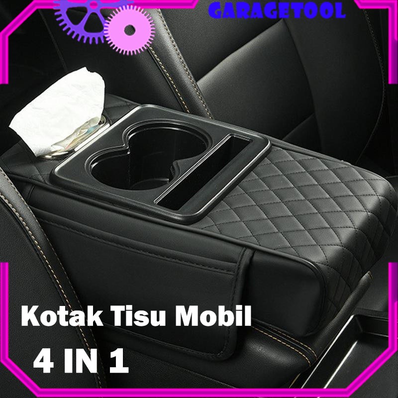 GT|4 IN 1 Armrest Pad Mobil Kotak Tisu Mobil Tempat Botol Console Box Storage / Cover Tisu Premium