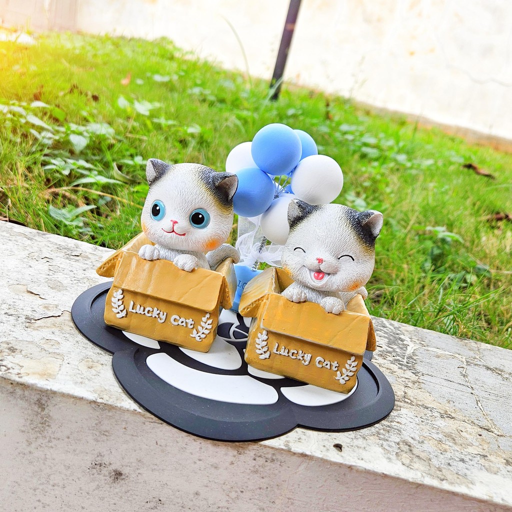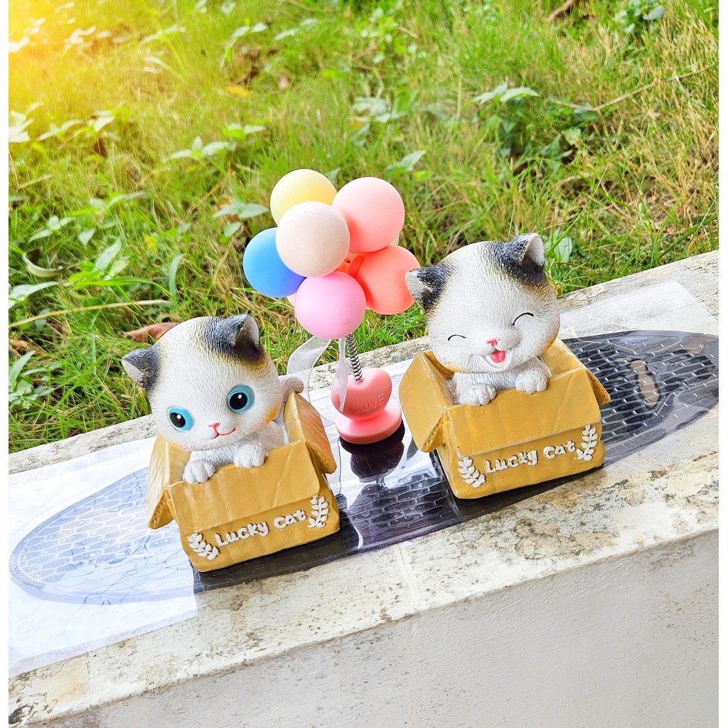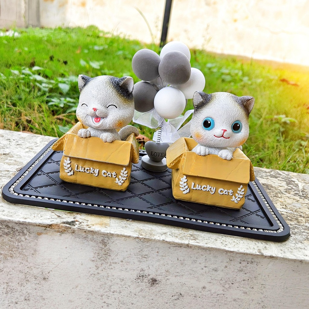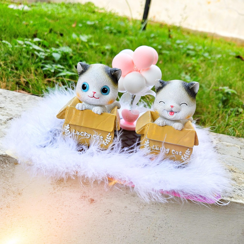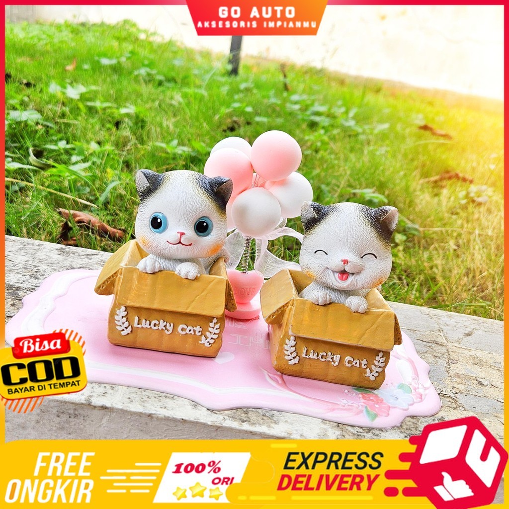 [ KOMBO LENGKAP SESUAI FOTO] Pajangan Dasboard Mobil Motif Kucing Set Balon Per Dekorasi Mobil Meong Set Cantik