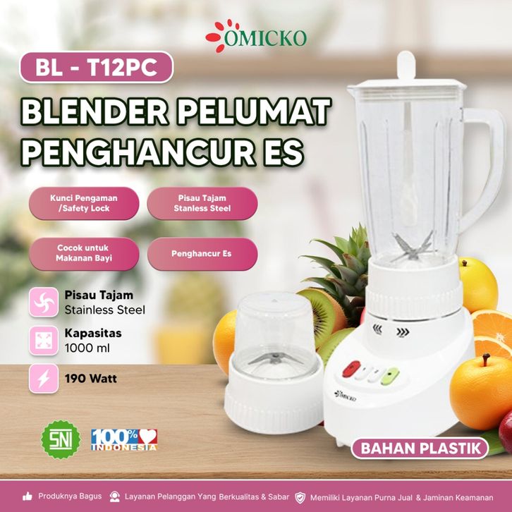 OMICKO Blender Plastik Set 2 in 1 Pisau Stainless Food Grade Bumbu portable Multifungsi Murah Garansi Resmi Free Ongkir