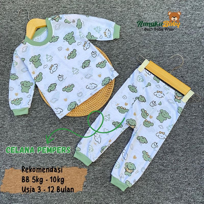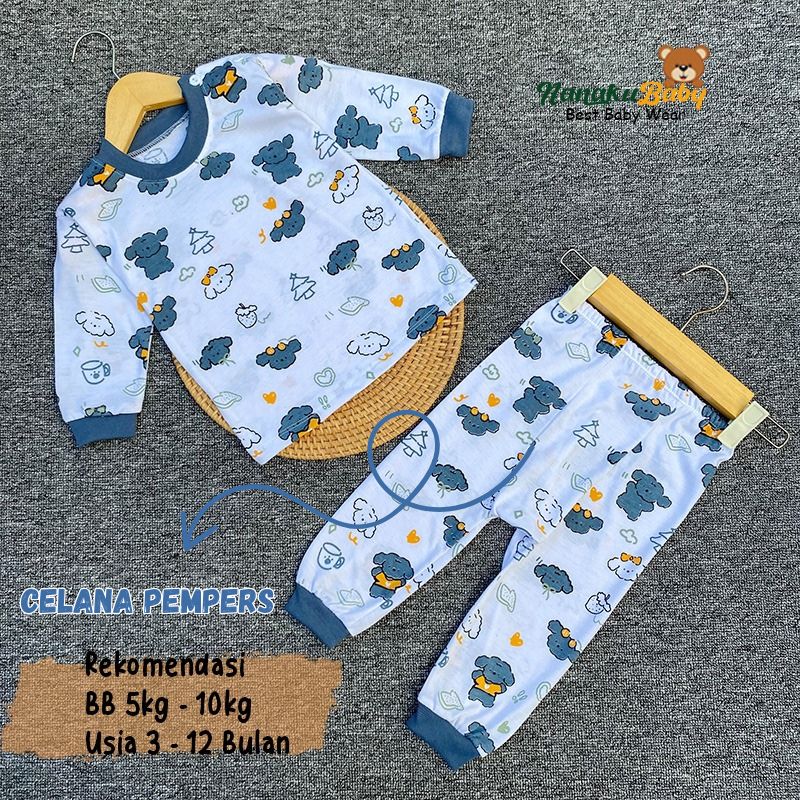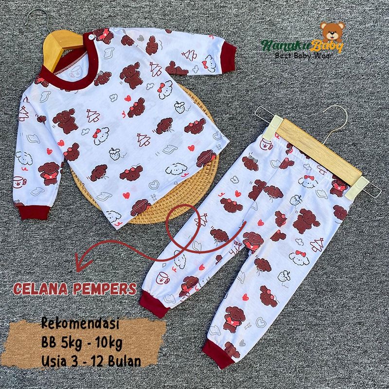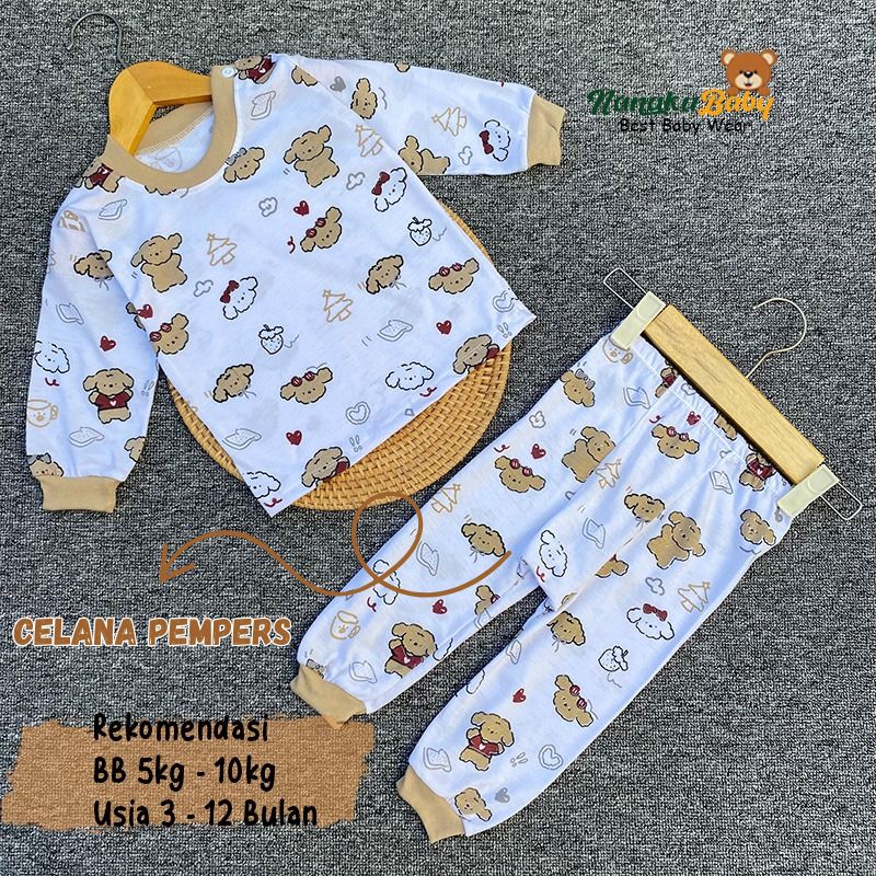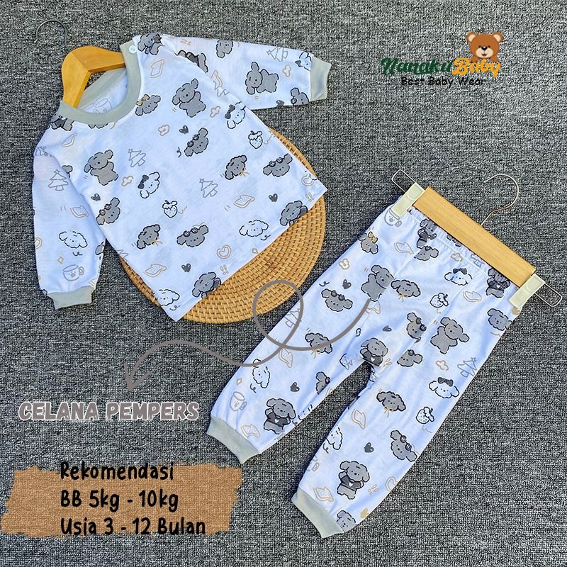 Nanaku Baby - Set Piyama Bayi Lengan Panjang Kancing Bahu Usia 3-12 Bulan Motif Boneka Roti