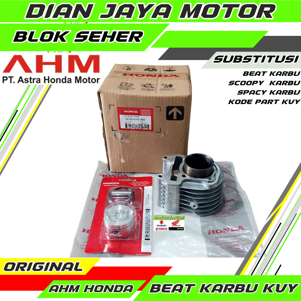 BORING Kit CYLINDER BLOK SEHER BEAT KARBU SCOOPY KARBU KODE PART KVY ORIGINAL AHM Blok seher Set Piston Honda Beat Karbu