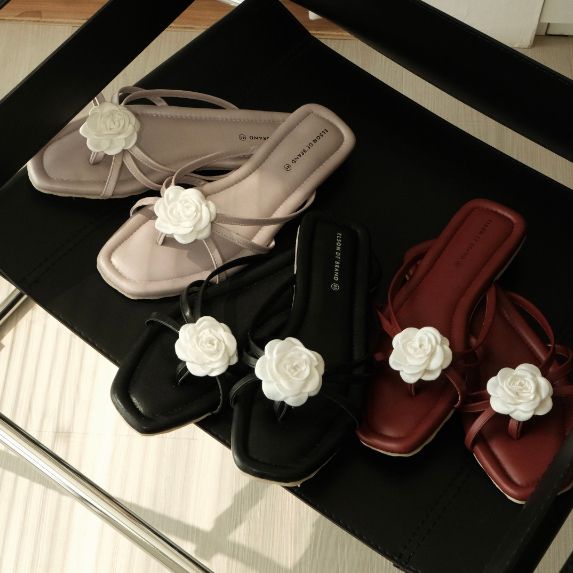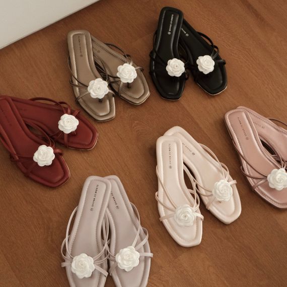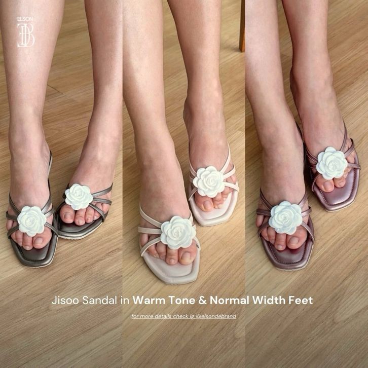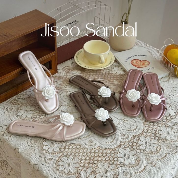 ELSON Jisoo Sandal Flat Wanita – Bunga Satin Elegan, Nyaman & Anti Slip