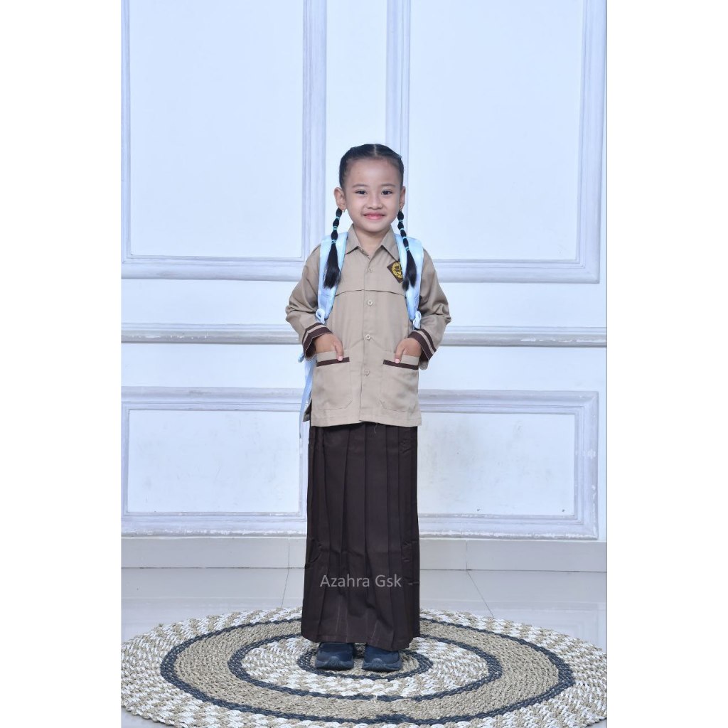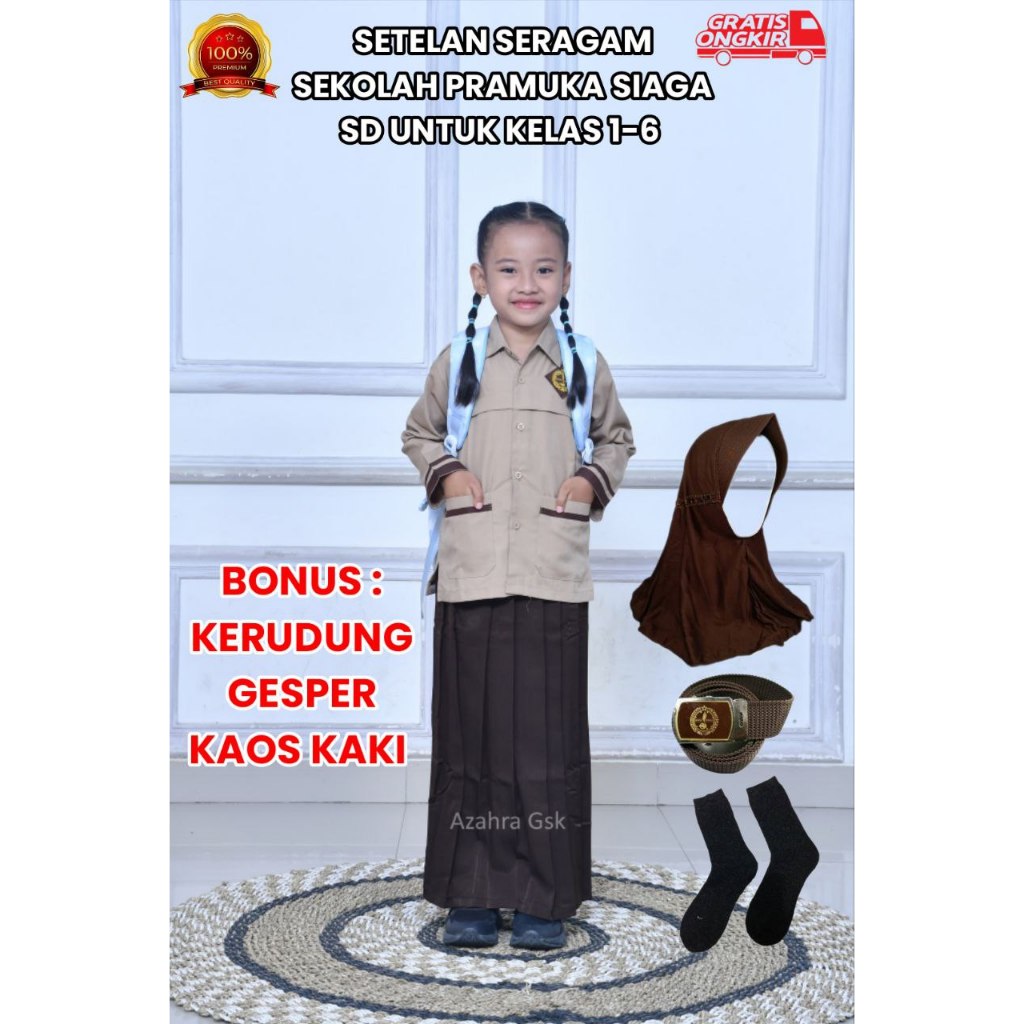SERAGAM SEKOLAH PRAMUKA SIAGA ANAK PEREMPUAN SD KELAS 1-6 BONUS KAOS KAKI KERUDUNG GESPER BAHAN BAJU OXFORD BAHAN ROK TW