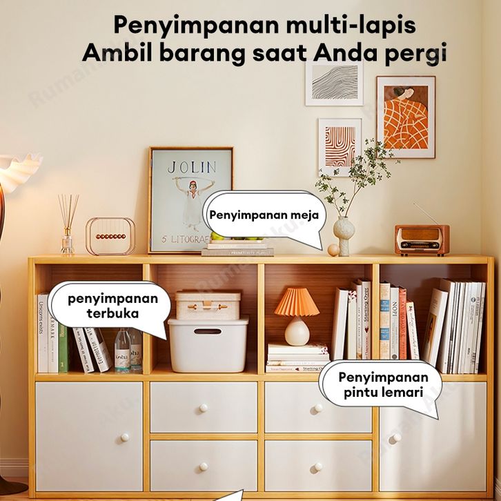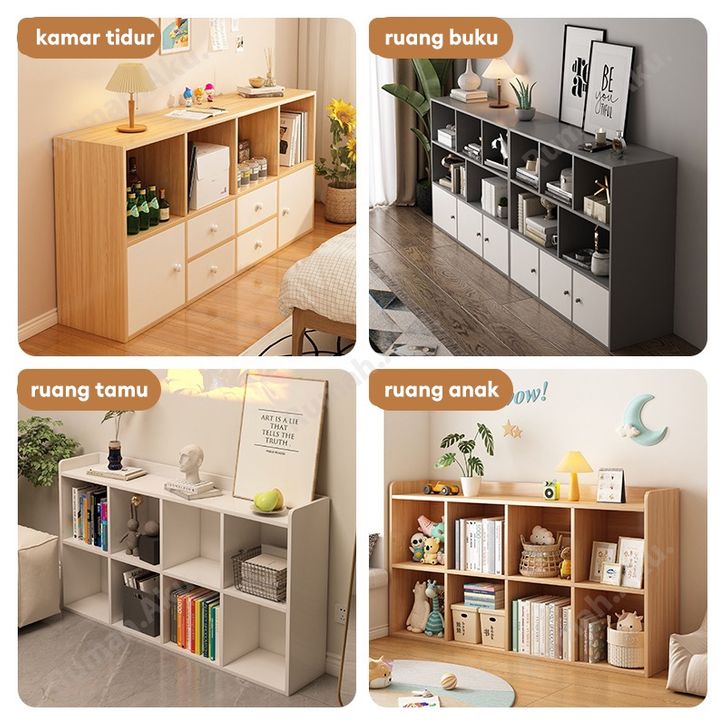 Star Lemari Buku Kayu Dengan Pintu 8 Kompartment Lemari Lantai RUa-ng Tamu Rak Kayu Rak Buku Anak Rak Buku