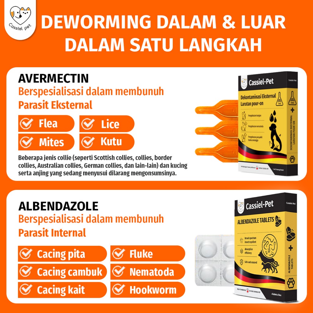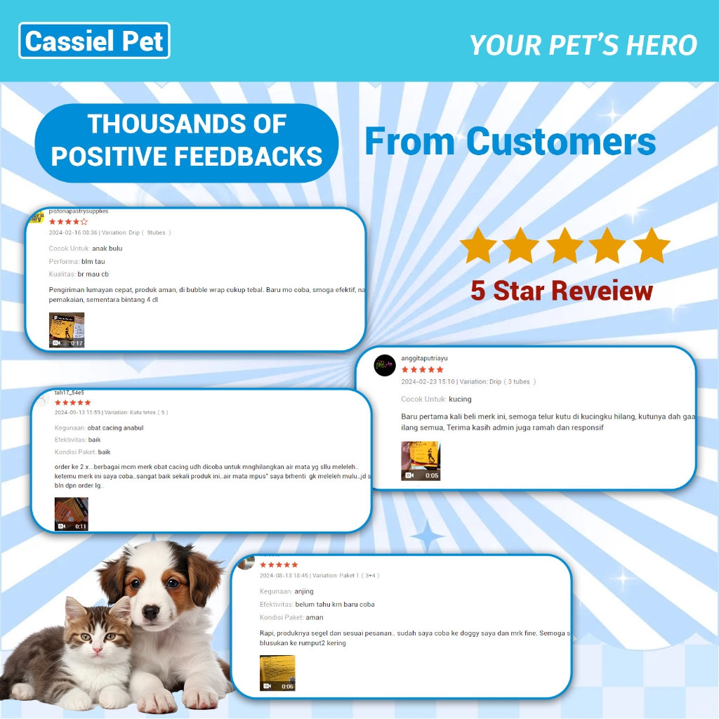 Cassiel Pet Obat Kutu Anjing/Kucing - Cair & Tablet Basmi Kutu, Cacing, Infeksi Kulit | Bpom