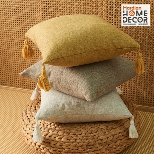 PREMIUM Bantal Sofa Plus Sarung Bantal Sofa Besar Dekorasi Bantal Kursi Bantal Mobil Linen 100 PERSEN Handemade dengan Tassel