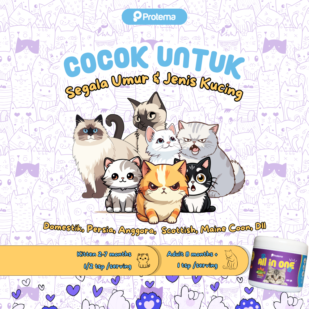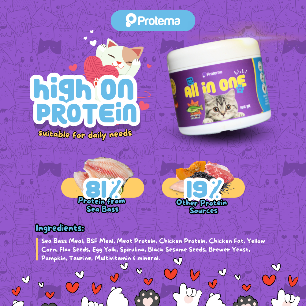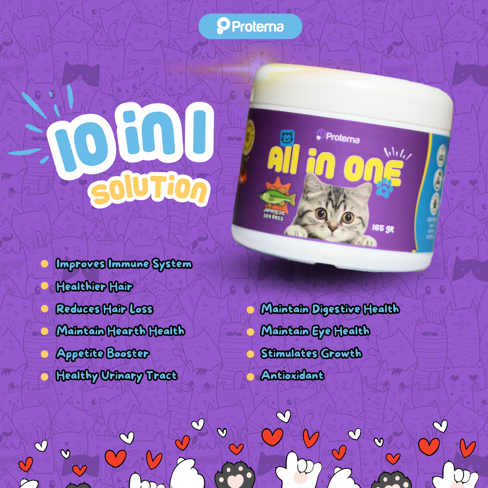 All In One [Protema] Vitamin Harian Kucing | Kesehatan Imun, Bulu, Mata, Pencernaan, +Nafsu Makan | 165 Gr | Makanan & S