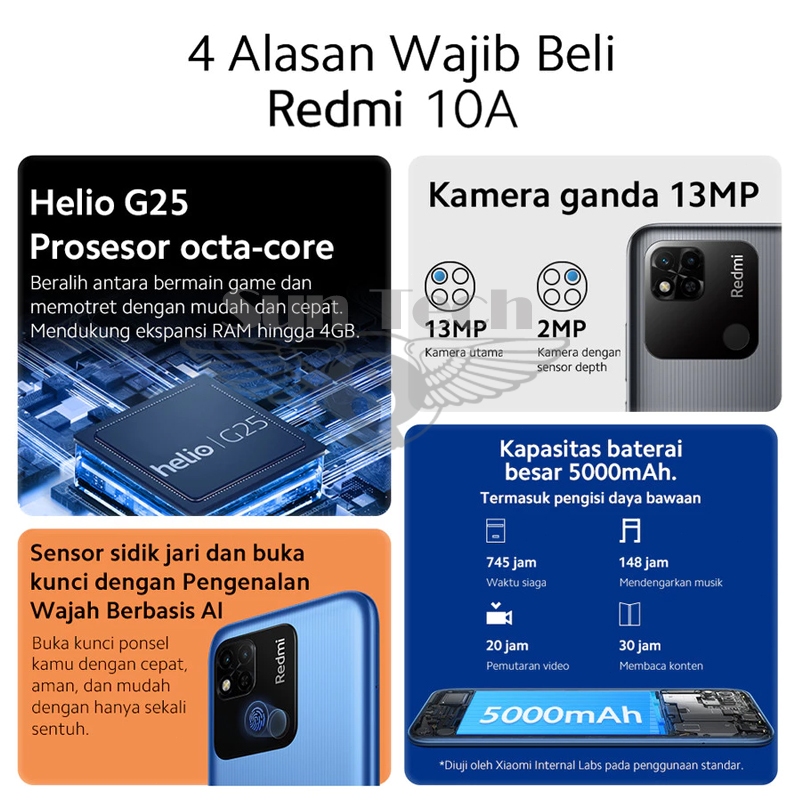 [Mall]Ponsel Xiaomi Redmi 10a Ram 8/256GB ori Baru 6.35 LCD 5000mAh Ai kamera HD Garansi Resmi 1 Tahun