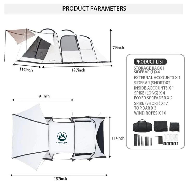 (GARANSI 1 TAHUN)Tenda Camping LANDWOLF ECLIPTA Kapasitas 4-8 Orang Tunnel 4P Double Layer Waterproof Tenda Kemah