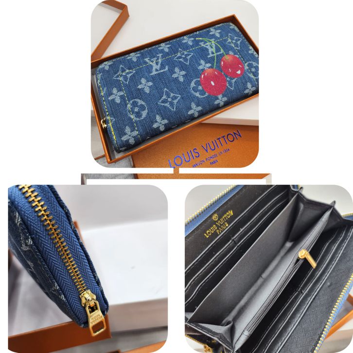 DOMPET LV DENIM CHERRY PREMIUM/DOMPET WANITA ELPONG ZIPPER/DOMPET BRANDED TERBARU