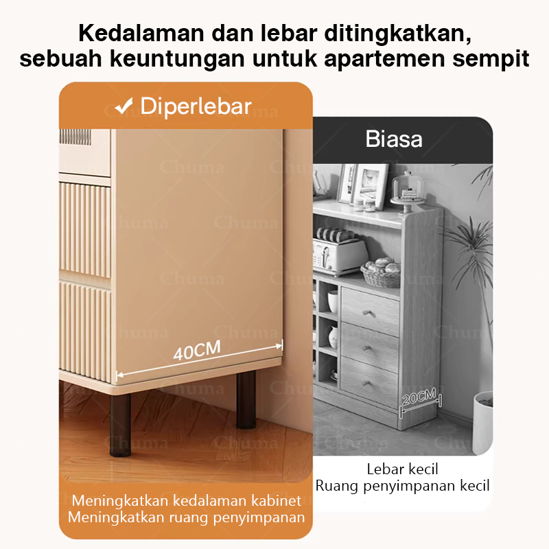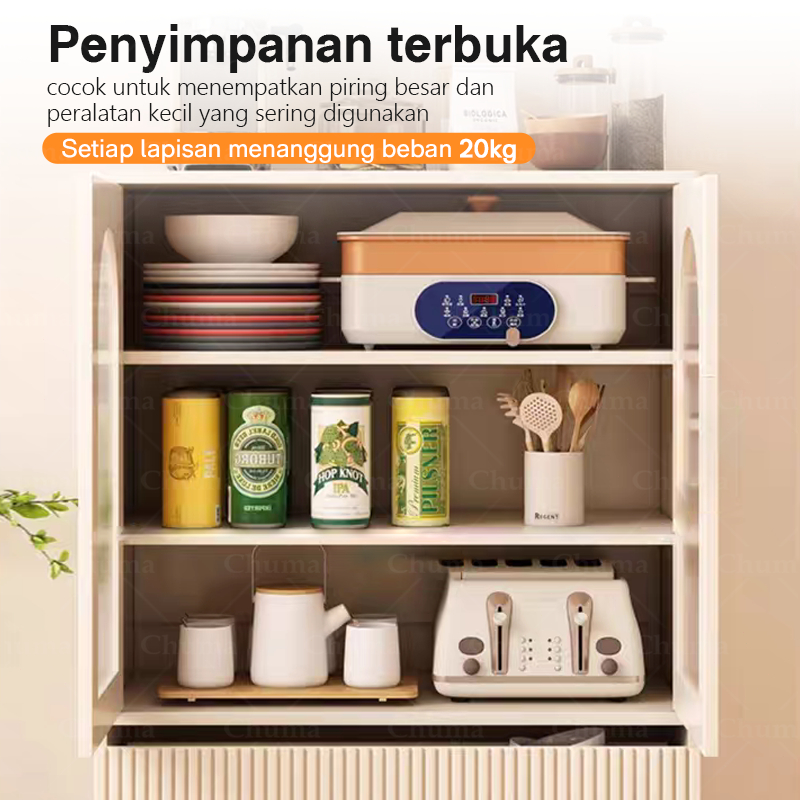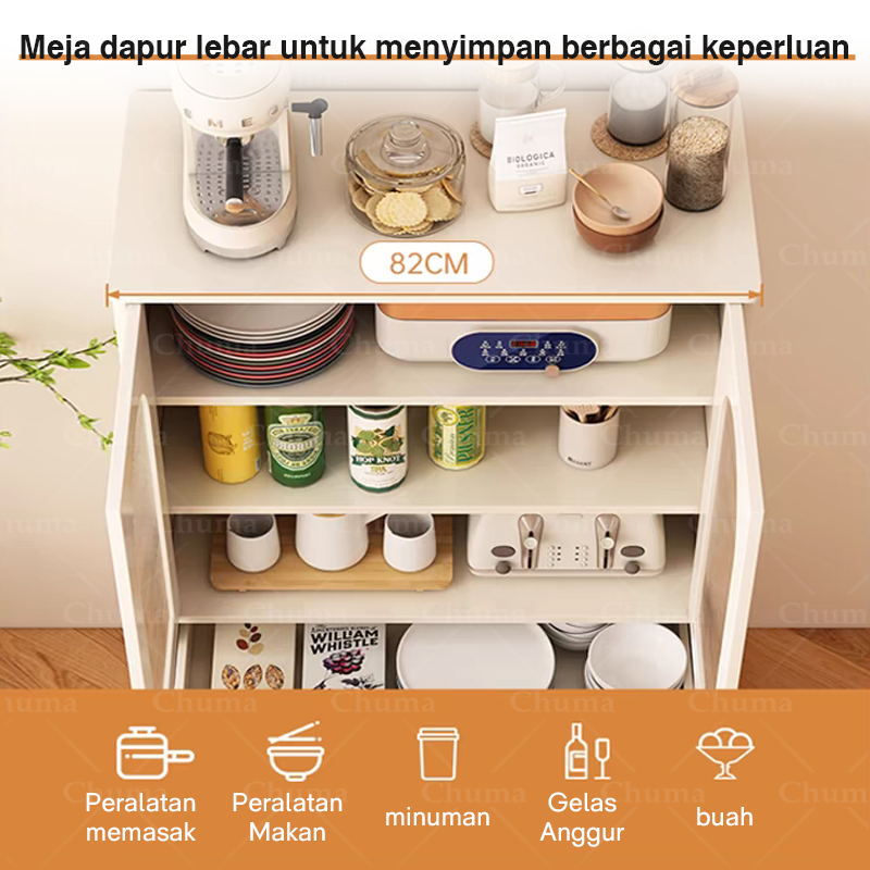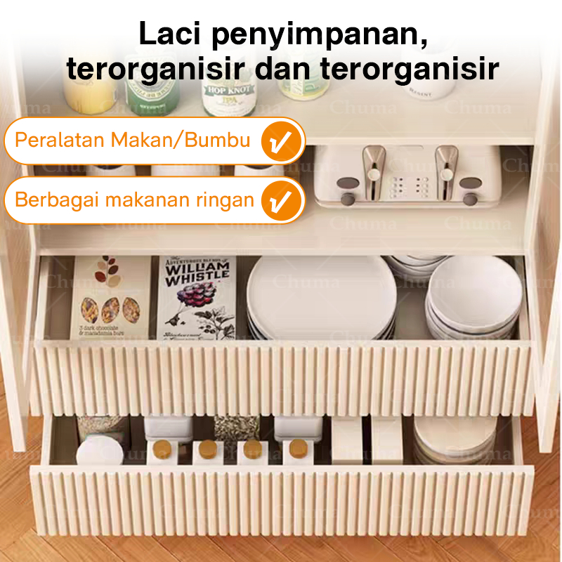 Bufet Serbaguna Sideboard 80/100/120cm Lemari Kabinet Laci Klasik Buffet Dapur 2 Pintu Penyimpanan Serbaguna Cubic