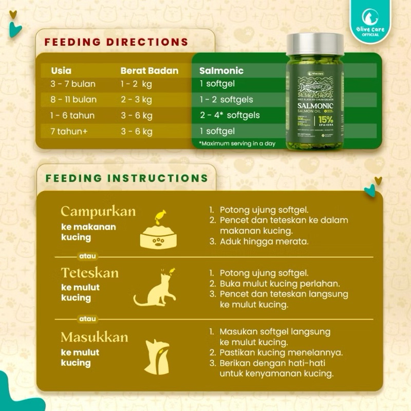 O Care Vitamin Minyak Ikan Kucing Salmonic Murni & Alami Non-Gmo Tinggi Omega 3 Epa Dha Omega 6 Fish Oil Untuk Pertu