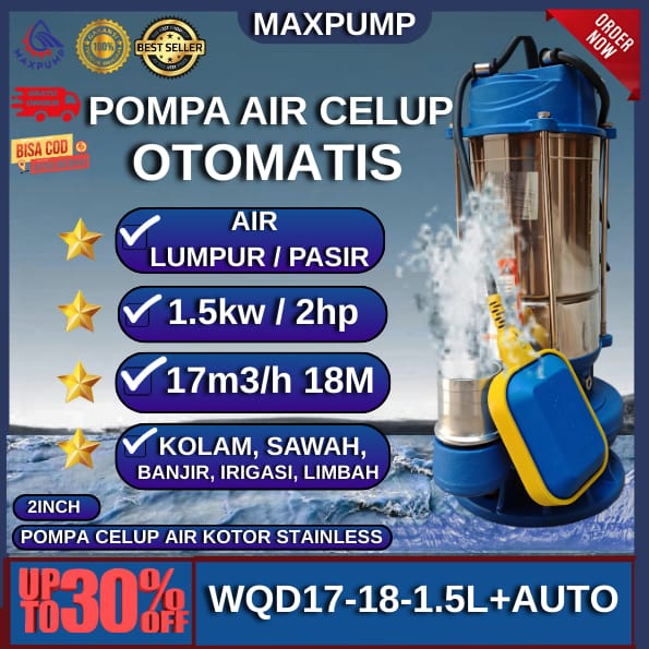 MAXPUMP WQD17-18-1.5L+Float MAXPUMP Pompa Celup Air Kotor sewage pump 2inch 1.5Kw Mesin Pompa Air Kolam Ikan Kuras Air